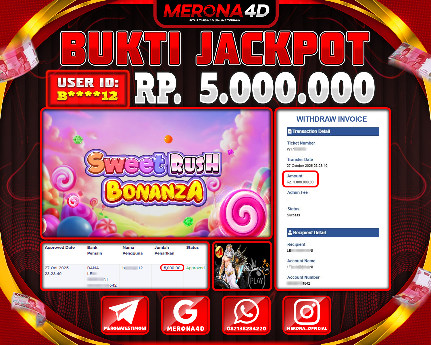 Selamat Kepada Member MERONA4D R*****2 Telah Jackpot Di SWEET RUSH BONANZA