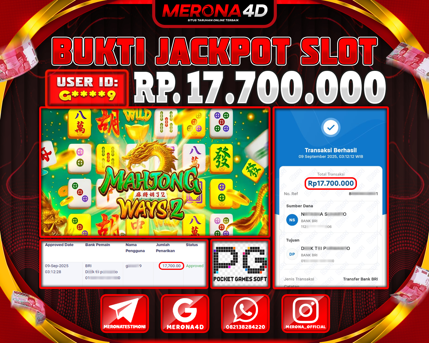 Selamat Kepada Member MERONA4D G****9 Telah Jackpot Di MAHJONG WAYS 2