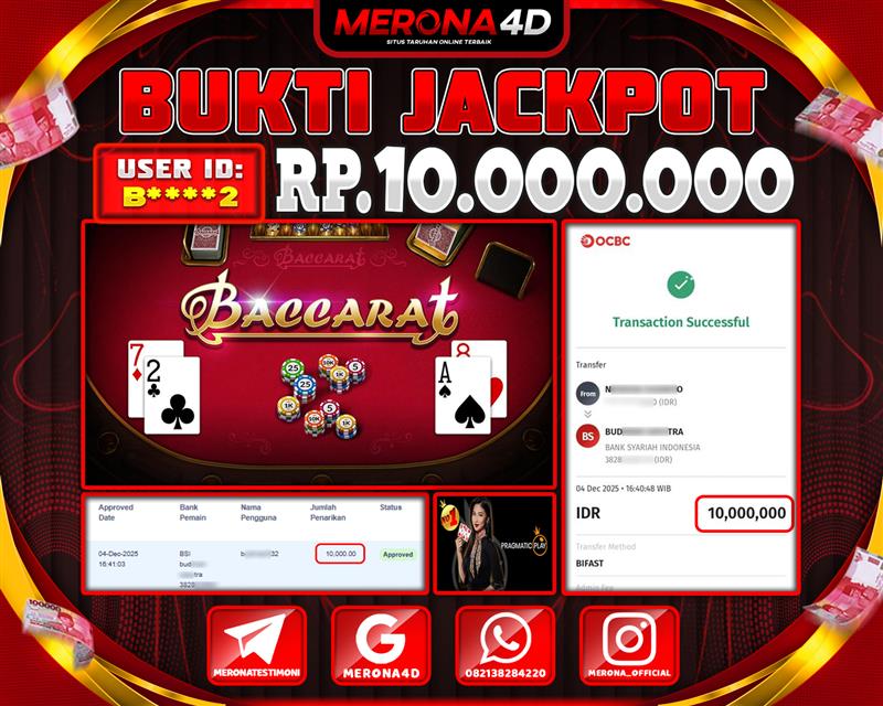 Selamat Kepada Member MERONA4D B*****2 Telah Jackpot Di BACCARAT