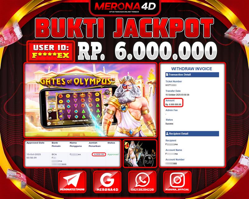 Selamat Kepada Member MERONA4D B*****EE Telah Jackpot Di GATES OF OLYMPUS 1000
