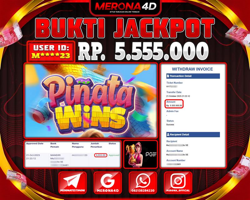 Selamat Kepada Member MERONA4D M*****23 Telah Jackpot Di PINATA WINS