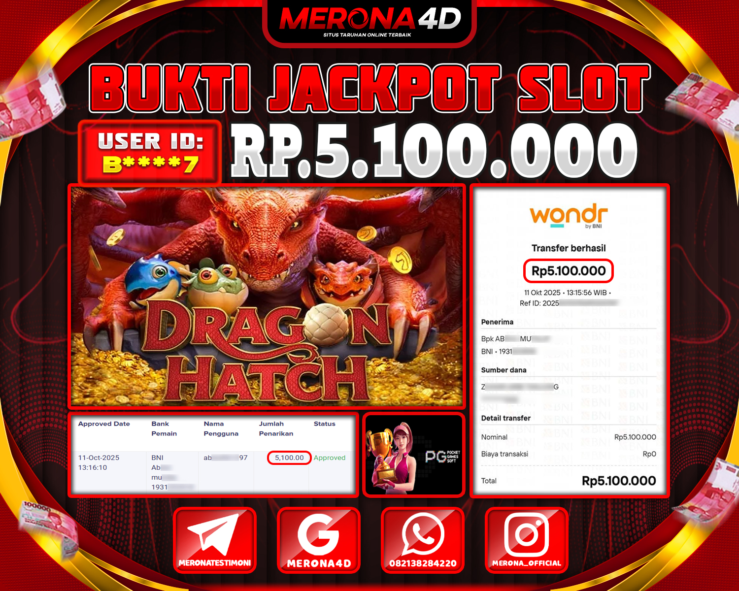 Selamat Kepada Member MERONA4D B****7 Telah Jackpot Di DRAGON HATCH 2