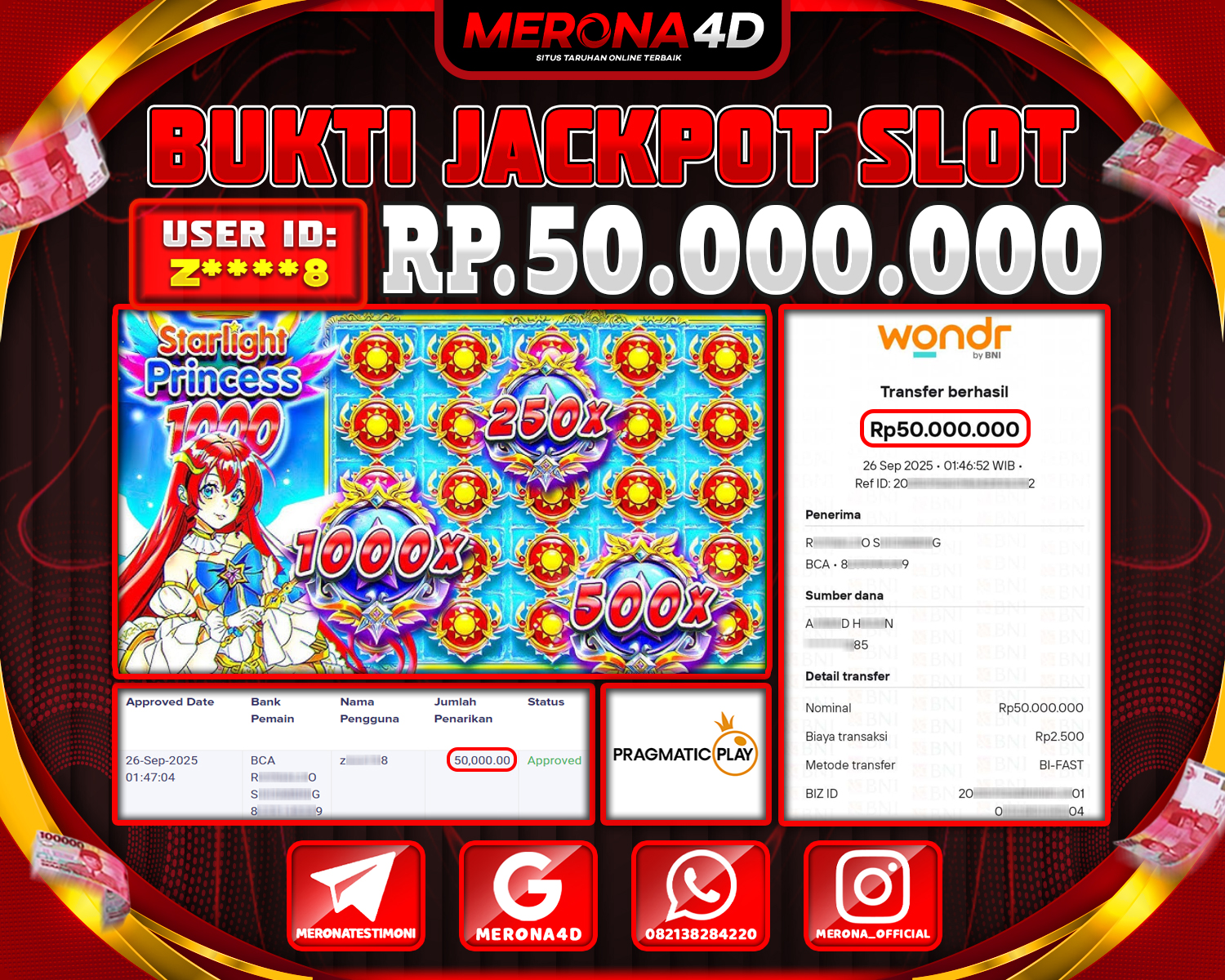 Selamat Kepada Member MERONA4D Z****8 Telah Jackpot Di STARLIGHT PRINCESS 1000
