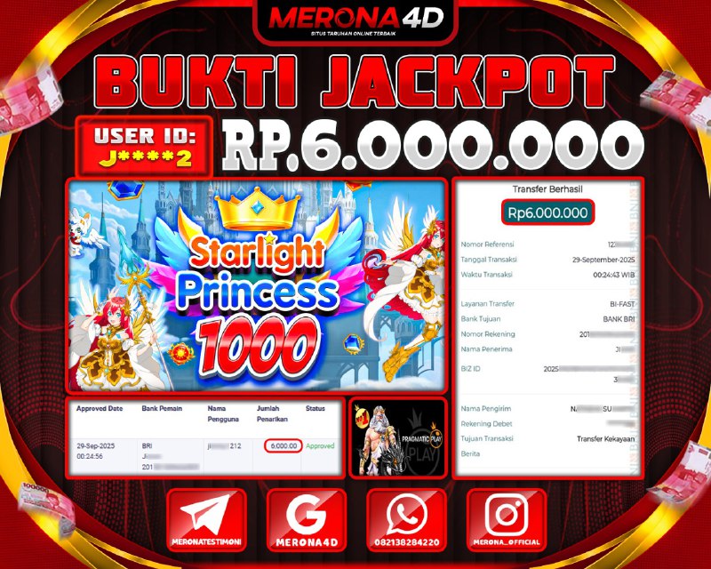 Selamat Kepada Member MERONA4D Jβ­‘οΏ½***οΏ½β­‘2 Telah Jackpot Di STARLIGHT PRINCESS 1000