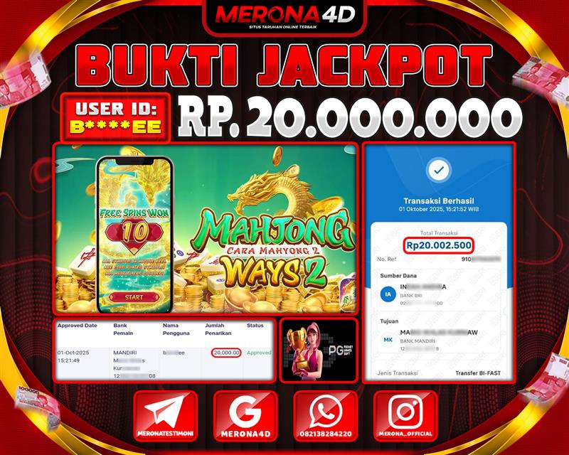 Selamat Kepada Member MERONA4D B****E Telah Jackpot Di MAHJONG WAYS 2