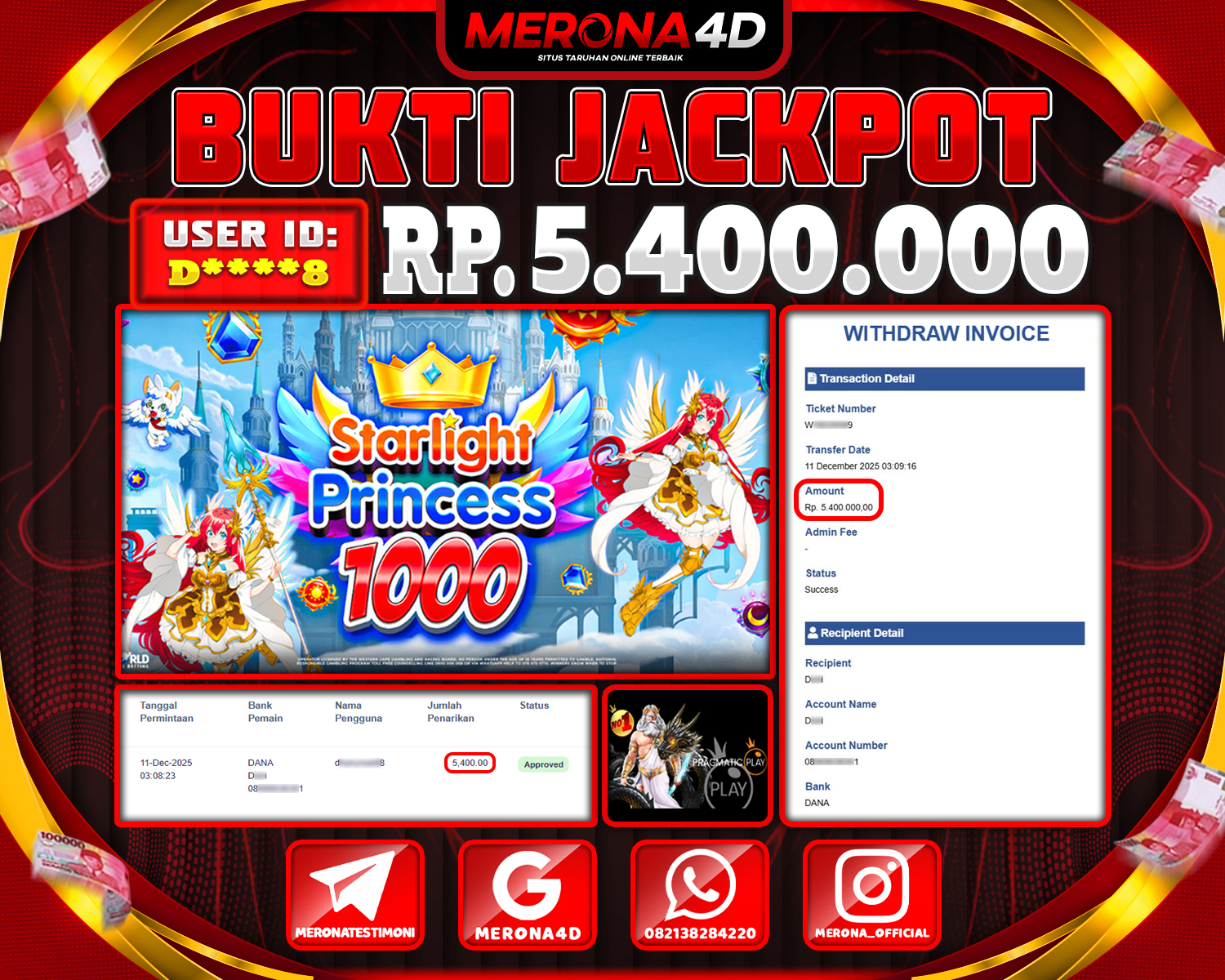 Selamat Kepada Member MERONA4D D****8 Telah Jackpot Di STARLIGHT PRINCESS 1000