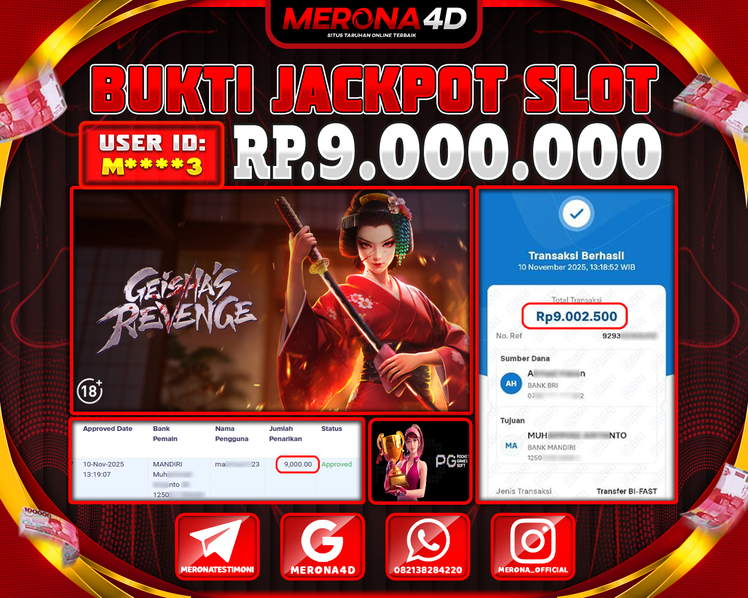 Selamat Kepada Member MERONA4D Mβ­‘οΏ½***οΏ½β­‘3 Telah Jackpot Di GEISHA'S REVENGE