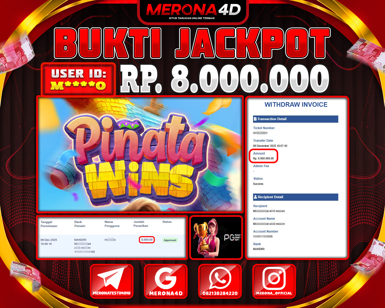 Selamat Kepada Member MERONA4D M****O Telah Jackpot Di PINATA WINS ( PG SOFT )