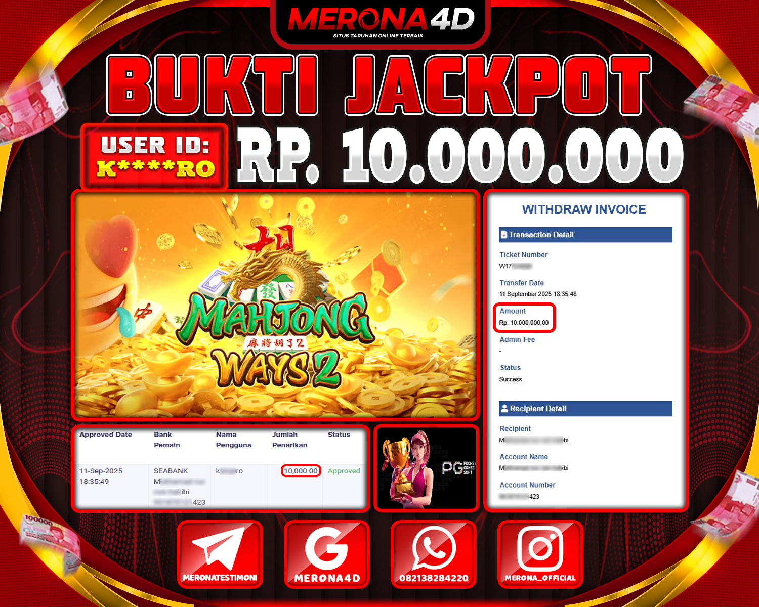 Selamat Kepada Member MERONA4D M****1 Telah Jackpot Di MAHJONG WAYS 2