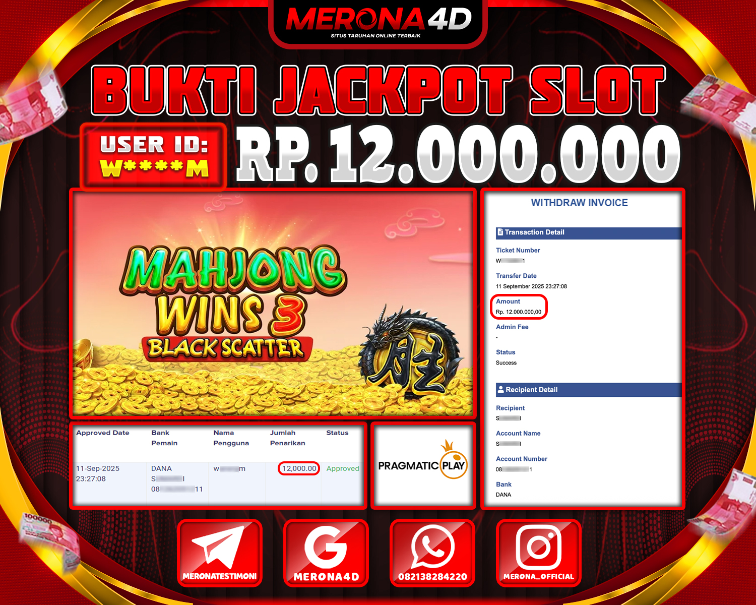 Selamat Kepada Member MERONA4D W****M Telah Jackpot Di MAHJONG WINS 3 – BLACK SCATTER