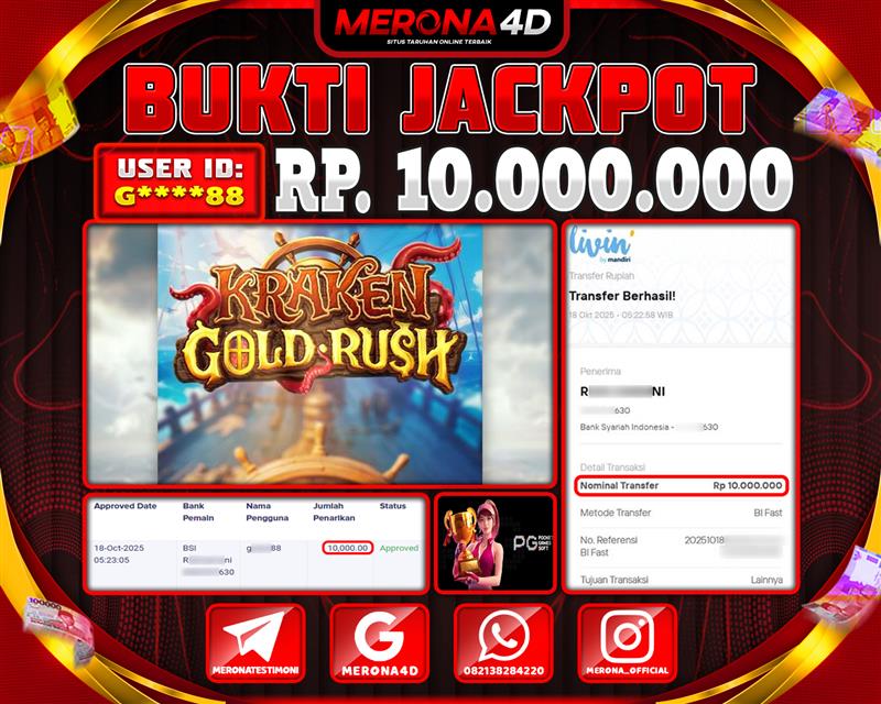 Selamat Kepada Member MERONA4D G*****88 Telah Jackpot Di KRAKEN GOLD RUSH