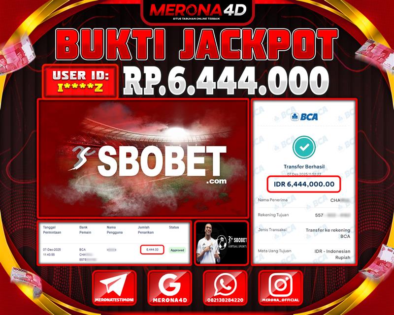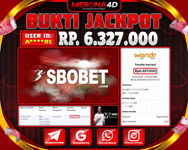 Selamat Kepada Member MERONA4D A*****01 Telah Jackpot Di SBOSPORTS