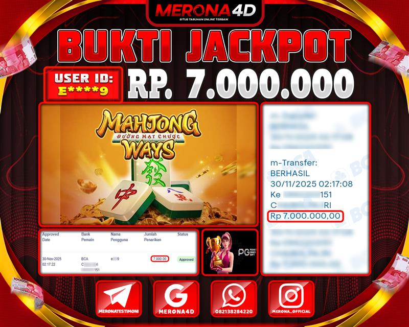 Selamat Kepada Member MERONA4D Y*** Telah Jackpot Di MAHJONG WAYS