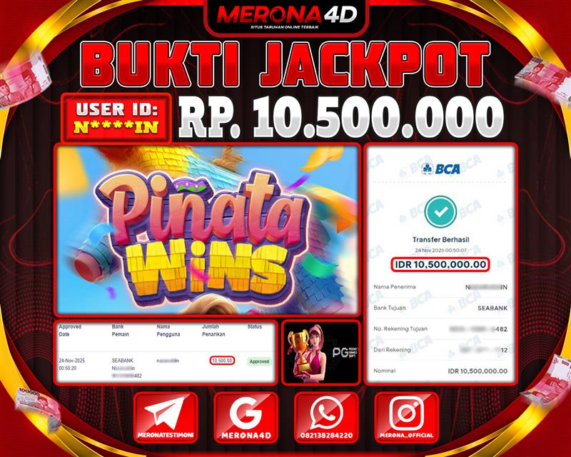 Selamat Kepada Member MERONA4D N*****IN Telah Jackpot Di PINATA WINS