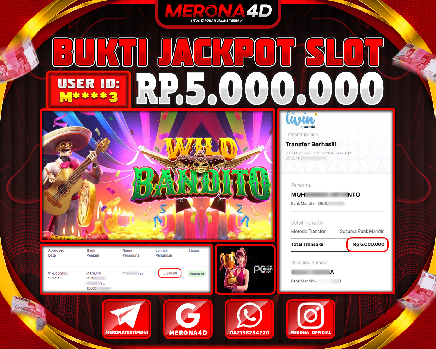 Selamat Kepada Member MERONA4D M****3 Telah Jackpot Di WILD BANDITO