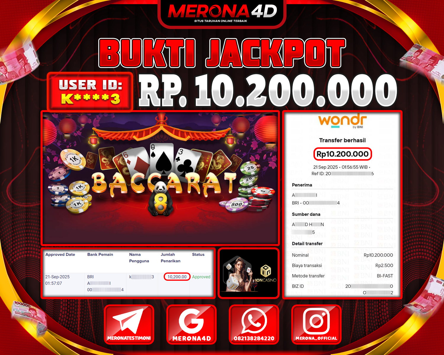 Selamat Kepada Member MERONA4D K****3 Telah Jackpot Di BACCARAT