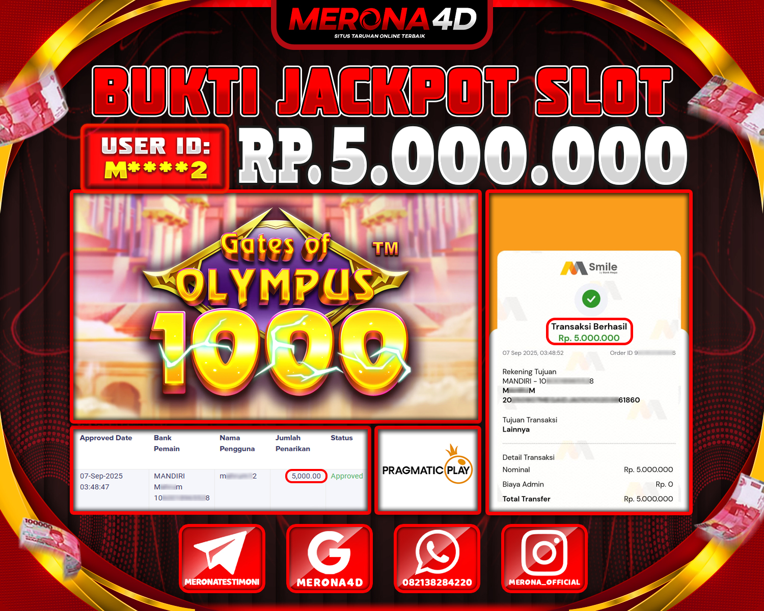 Selamat Kepada Member MERONA4D M****2 Telah Jackpot Di GATES OF OLYMPUS 1000