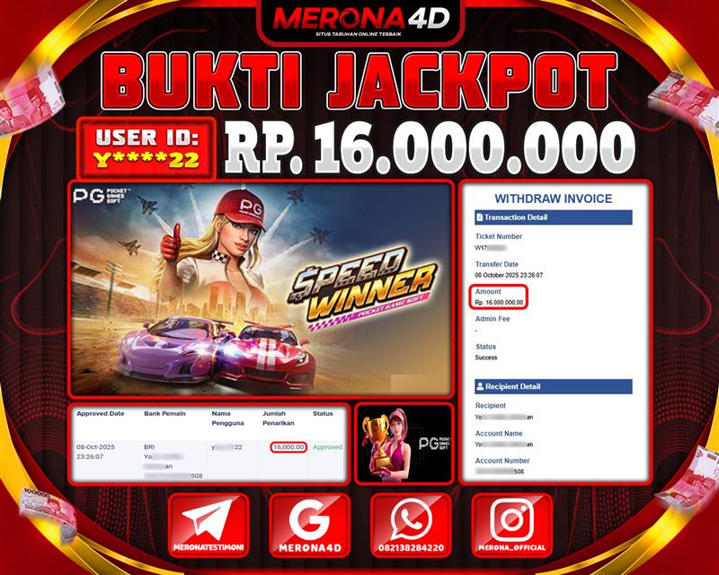 Selamat Kepada Member MERONA4D Y*****22 Telah Jackpot Di SPEED WINNER