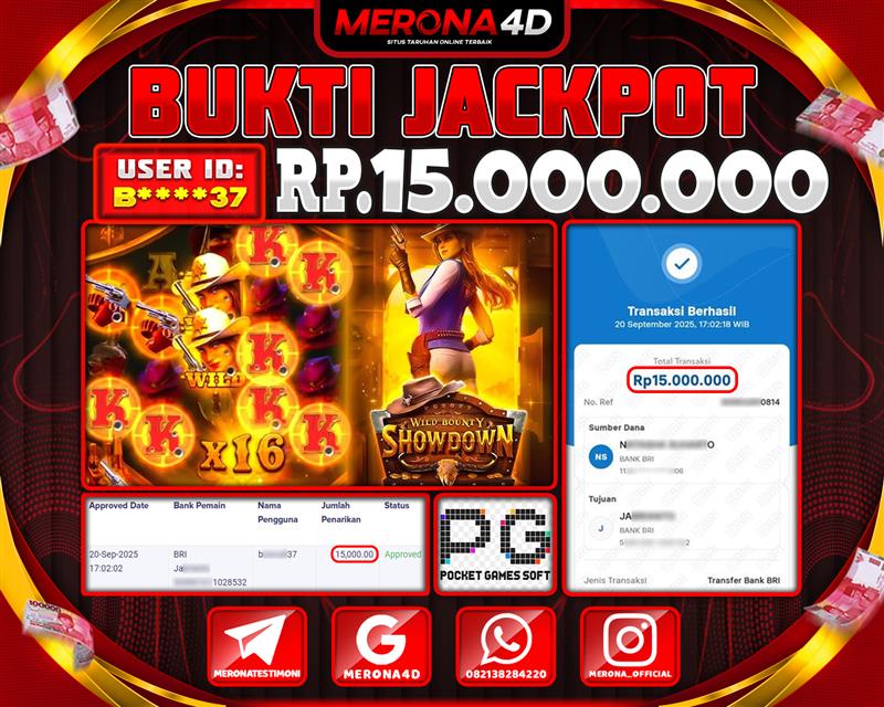 Selamat Kepada Member MERONA4D B*****7 Telah Jackpot Di WILD BOUNTY SHOWDOWN