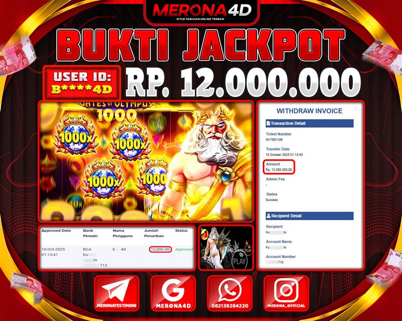 Selamat Kepada Member MERONA4D B*****4D Telah Jackpot Di GATES OF OLYMPUS 1000