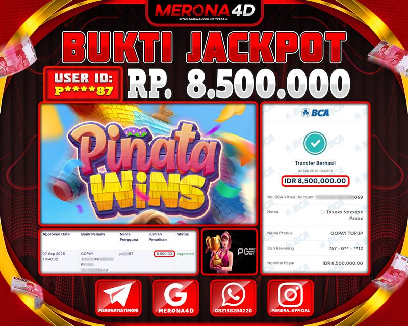 Selamat Kepada Member MERONA4D P*****7 Telah Jackpot Di PINATA WINS
