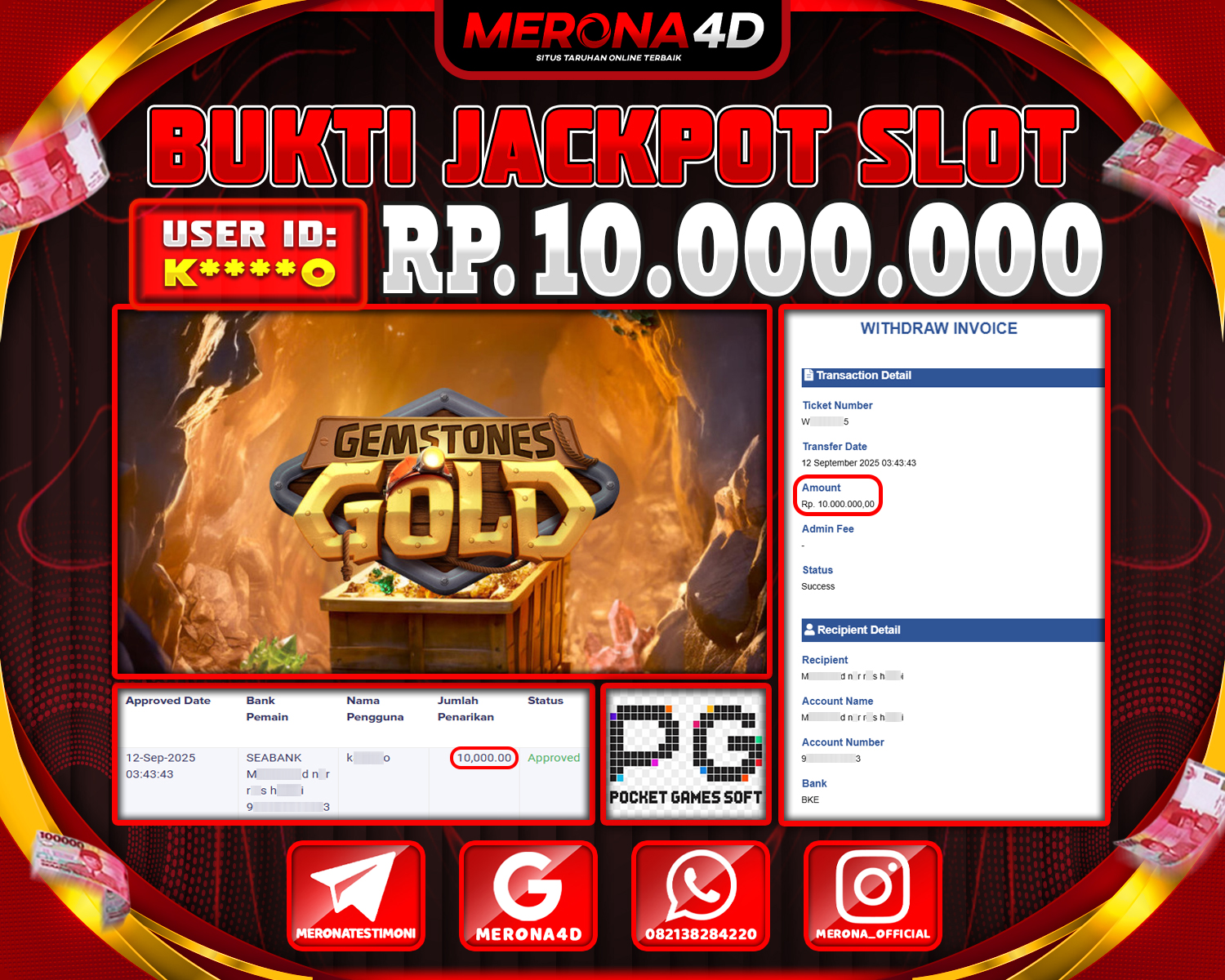 Selamat Kepada Member MERONA4D K****O Telah Jackpot Di GEMSTONES GOLD