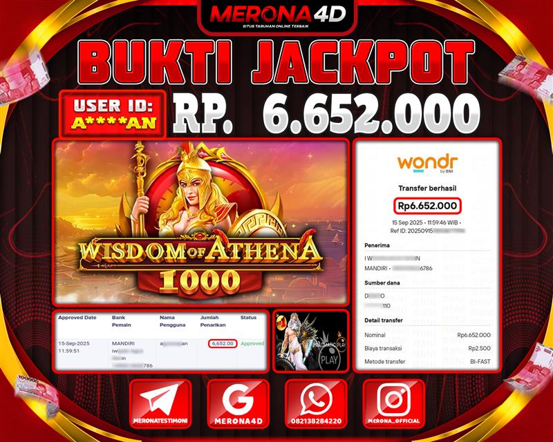 Selamat Kepada Member MERONA4D A****N Telah Jackpot Di WISDOM OF ATHENA 1000