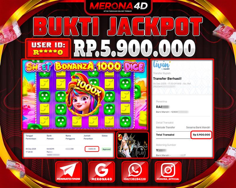 Selamat Kepada Member MERONA4D R*****0 Telah Jackpot Di SWEET BONANZA 1000 DICE