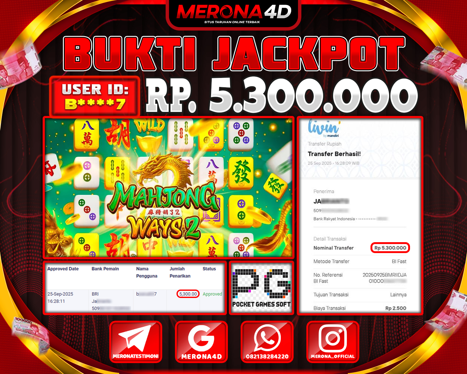 Selamat Kepada Member MERONA4D B**** Telah Jackpot Di MAHJONG WAYS 2