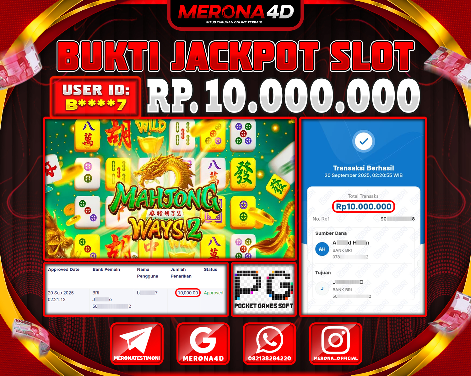 Selamat Kepada Member MERONA4D B****7 Telah Jackpot Di MAHJONG WAYS 2