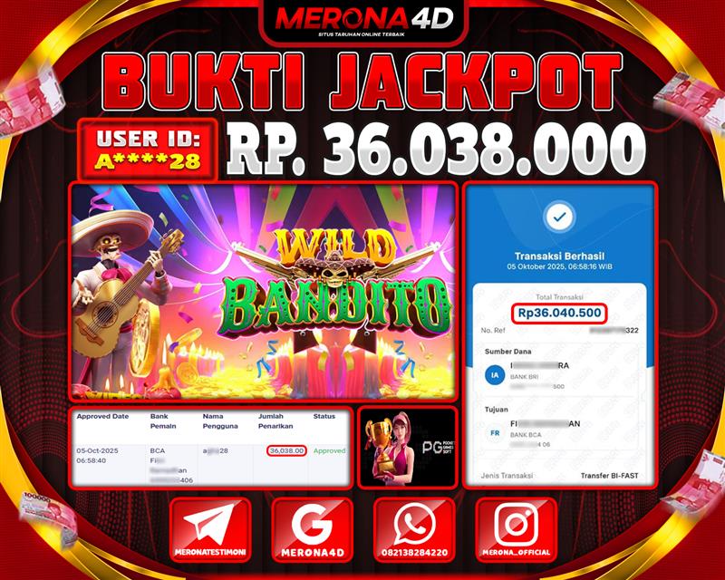 Selamat Kepada Member MERONA4D J*****O Telah Jackpot Di WILD BANDITO
