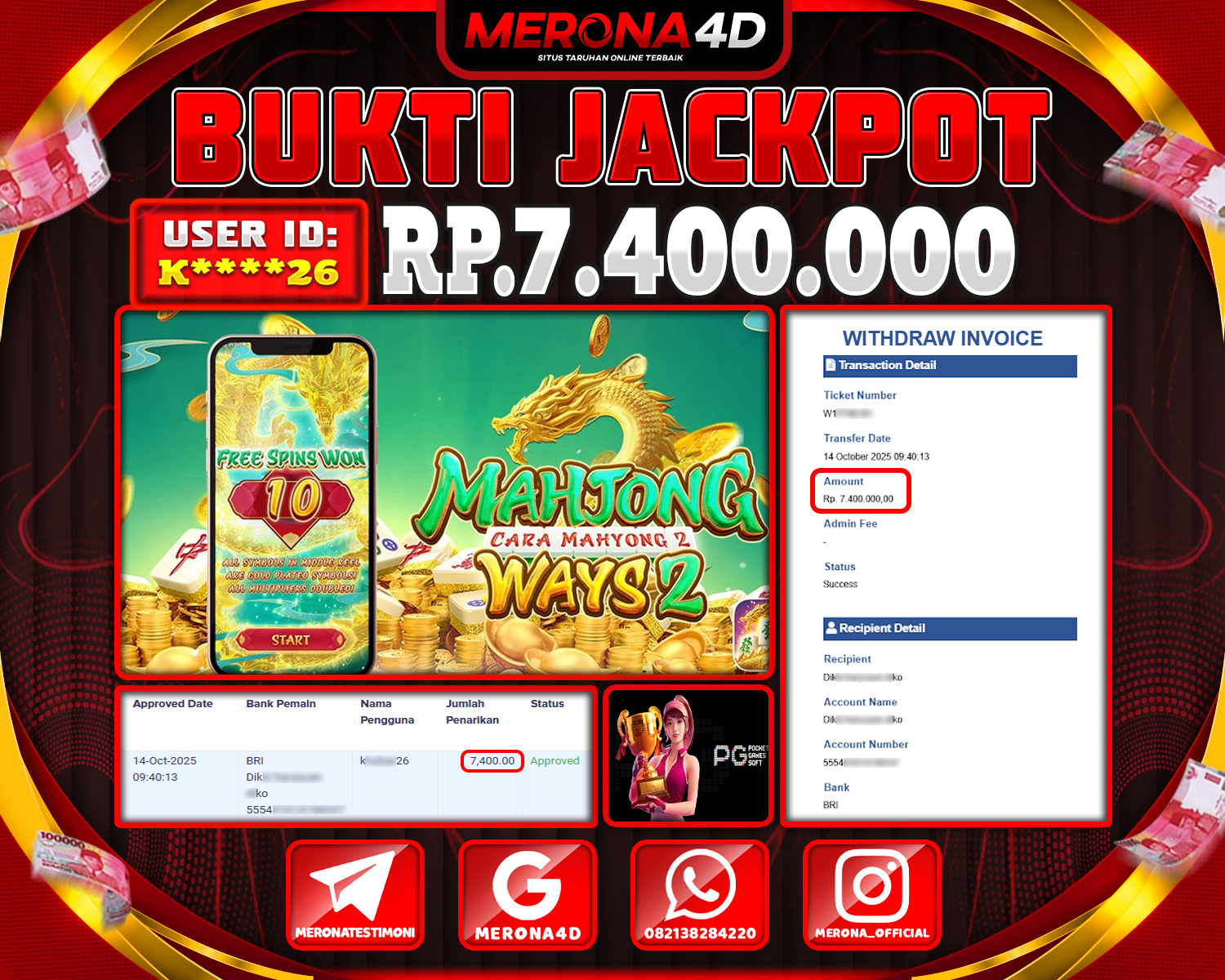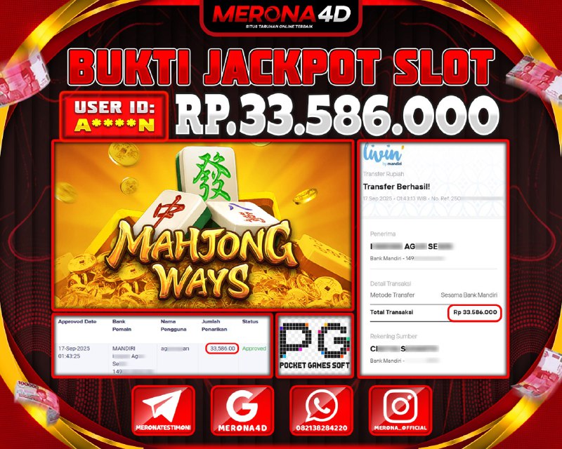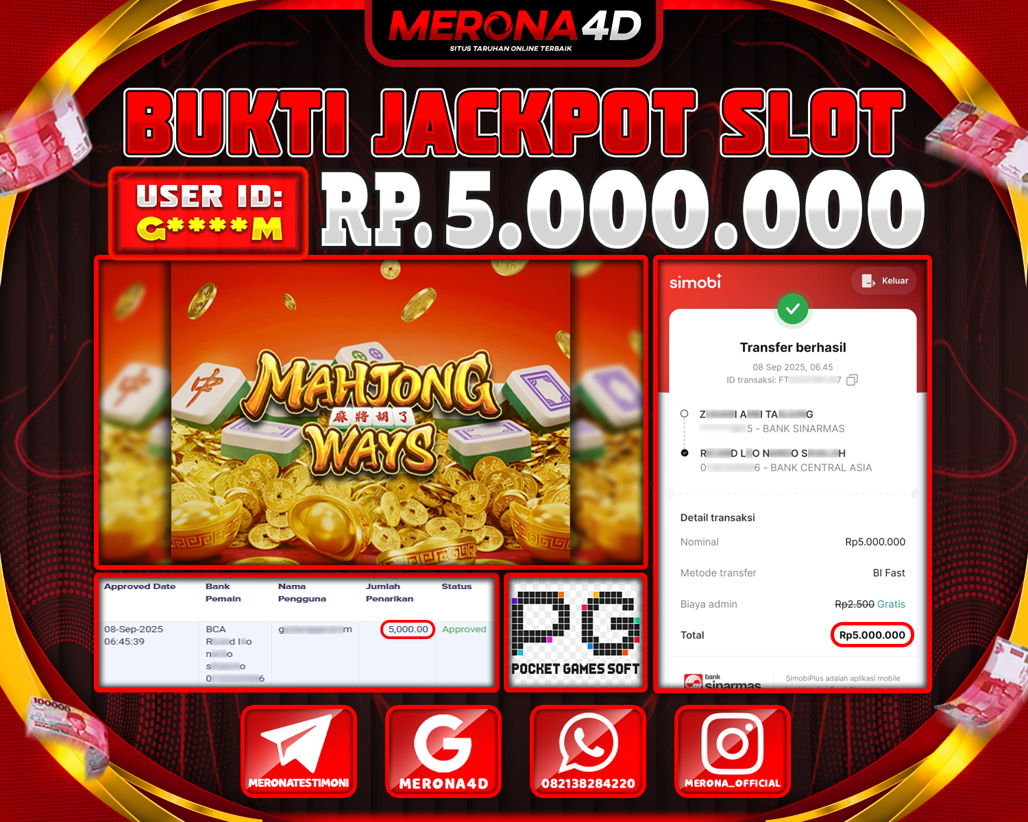 Selamat Kepada Member MERONA4D G****M Telah Jackpot Di MAHJONG WAYS