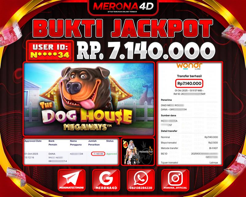 Selamat Kepada Member MERONA4D N****4 Telah Jackpot Di THE DOG HOUSE MEGAWAYS
