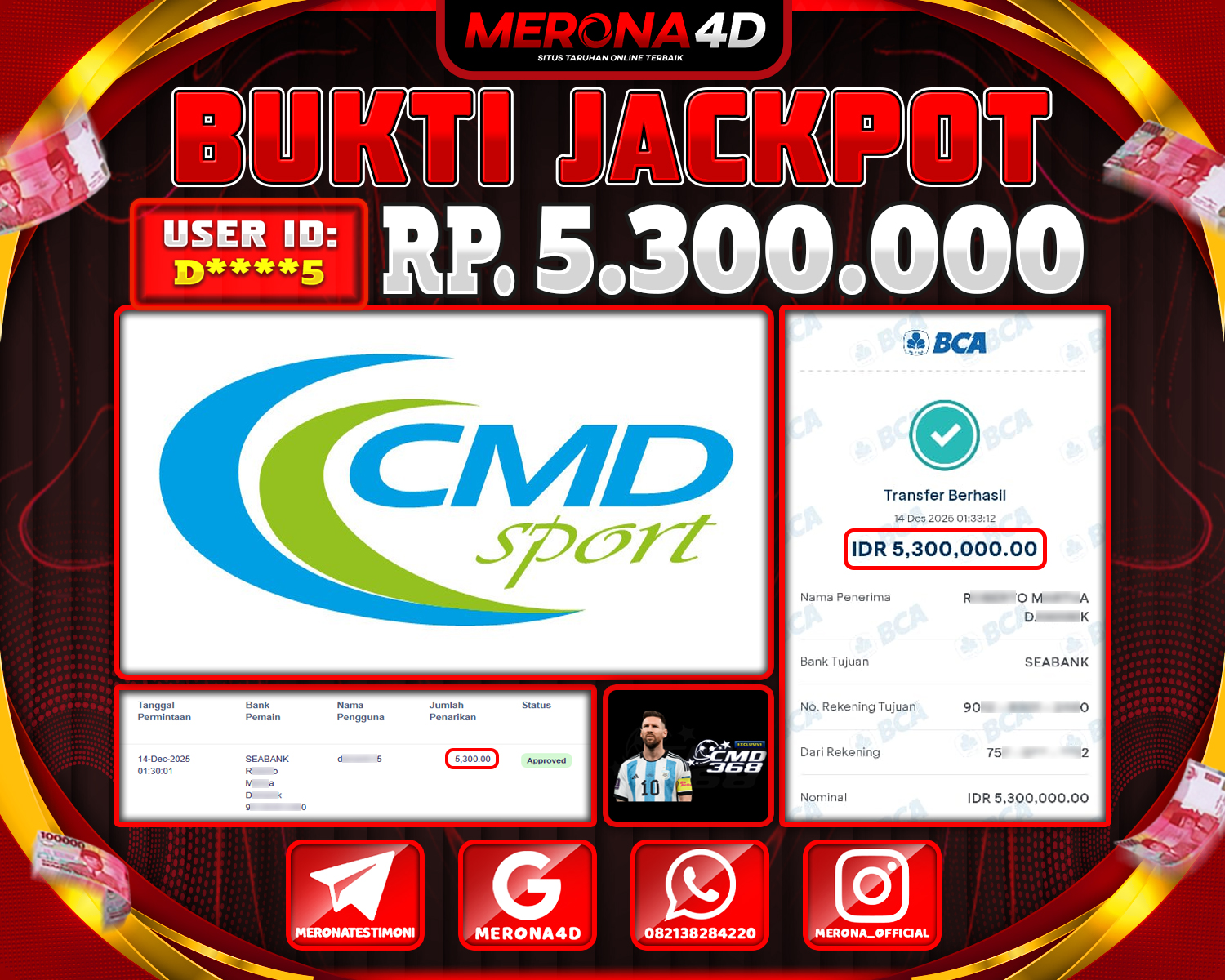 Selamat Kepada Member MERONA4D D****5 Telah Jackpot Di CMD SPORTBOOK