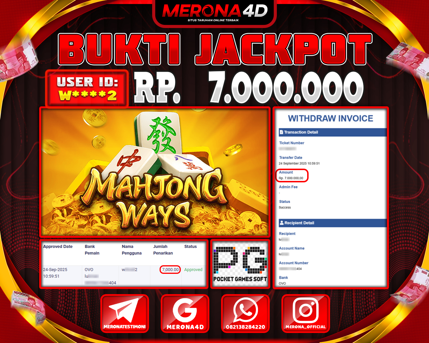 Selamat Kepada Member MERONA4D W****2 Telah Jackpot Di MAHJONG WAYS 1