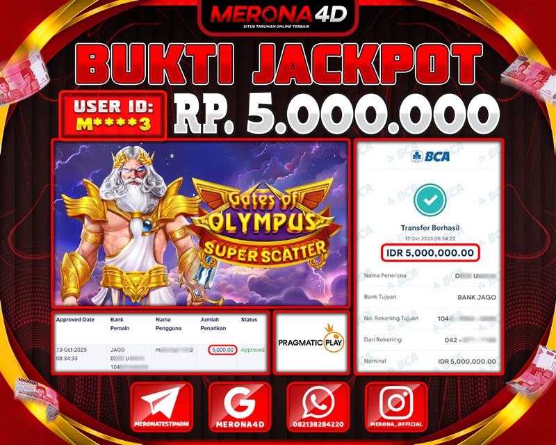 Selamat Kepada Member MERONA4D Mβ­‘οΏ½***οΏ½β­‘3 Telah Jackpot Di GATES OF OLYMPUS SUPER SCATTER
