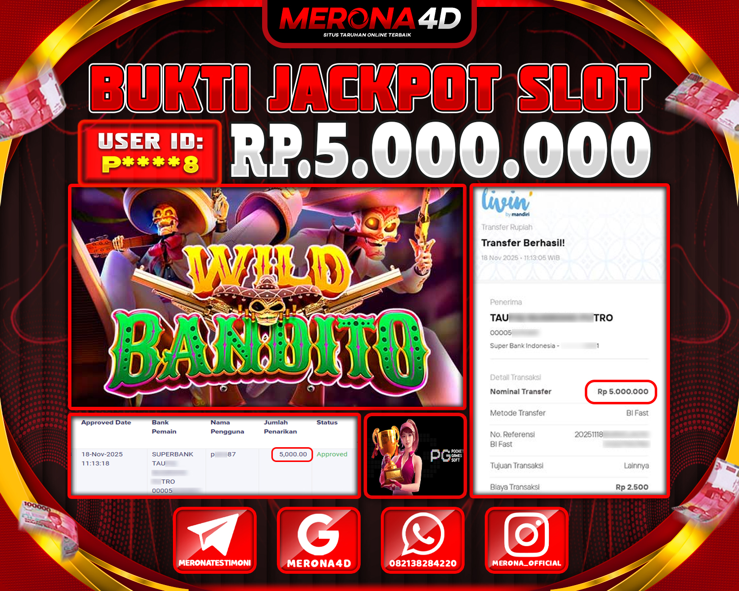 Selamat Kepada Member MERONA4D P****8 Telah Jackpot Di WILD BANDITO