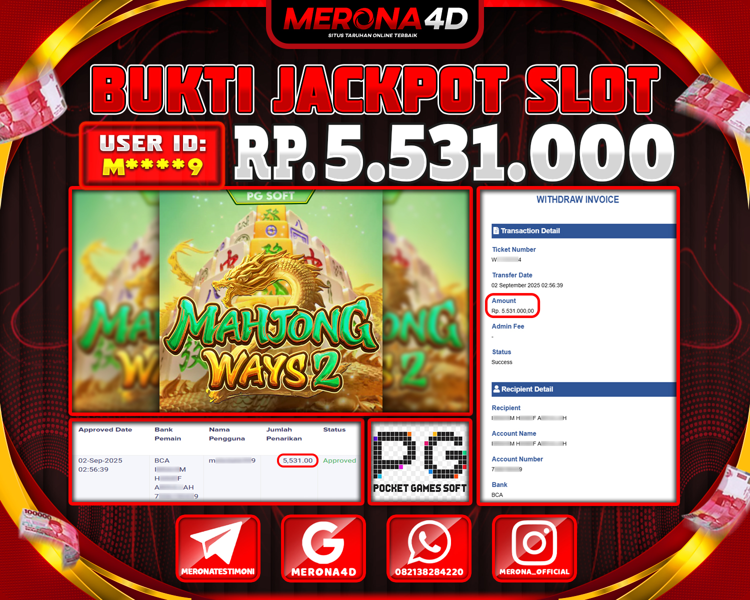 Selamat Kepada Member MERONA4D M****9 Telah Jackpot Di MAHJONG WAYS 2