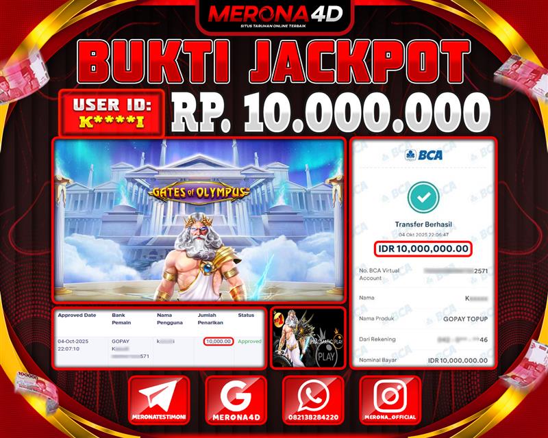 Selamat Kepada Member MERONA4D S*****99 Telah Jackpot Di GATES OF OLYMPUS 1000