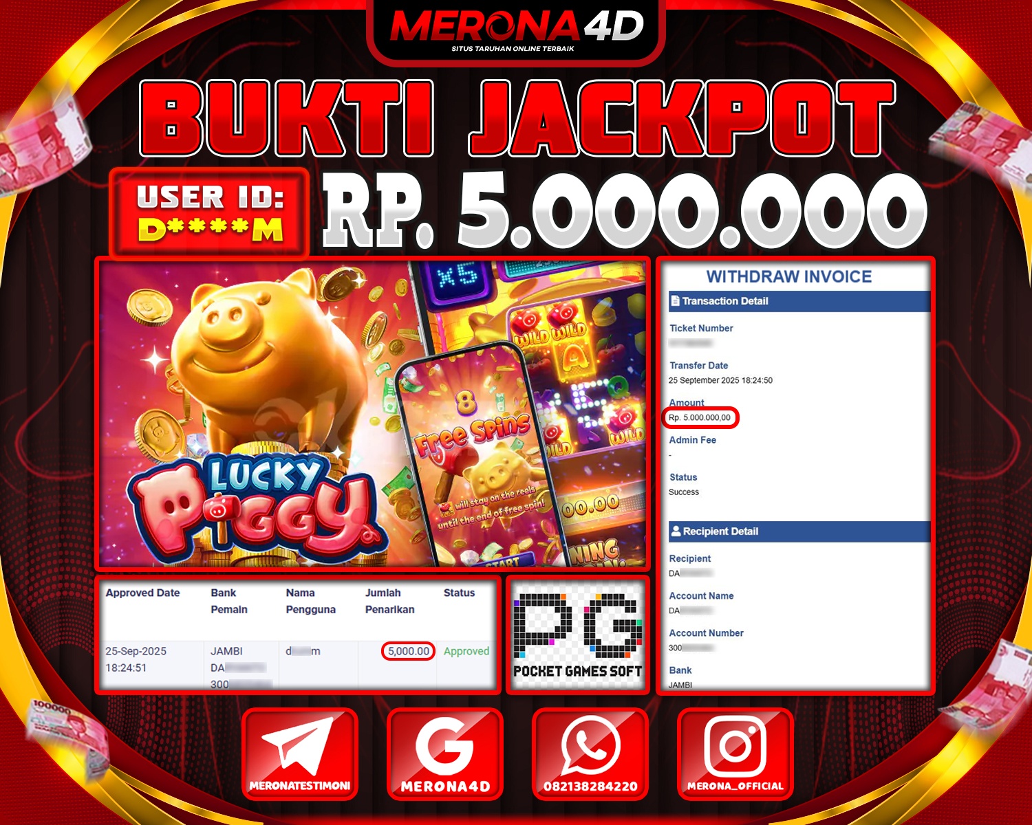 Selamat Kepada Member MERONA4D D*****M Telah Jackpot Di LUCKY PIGGY