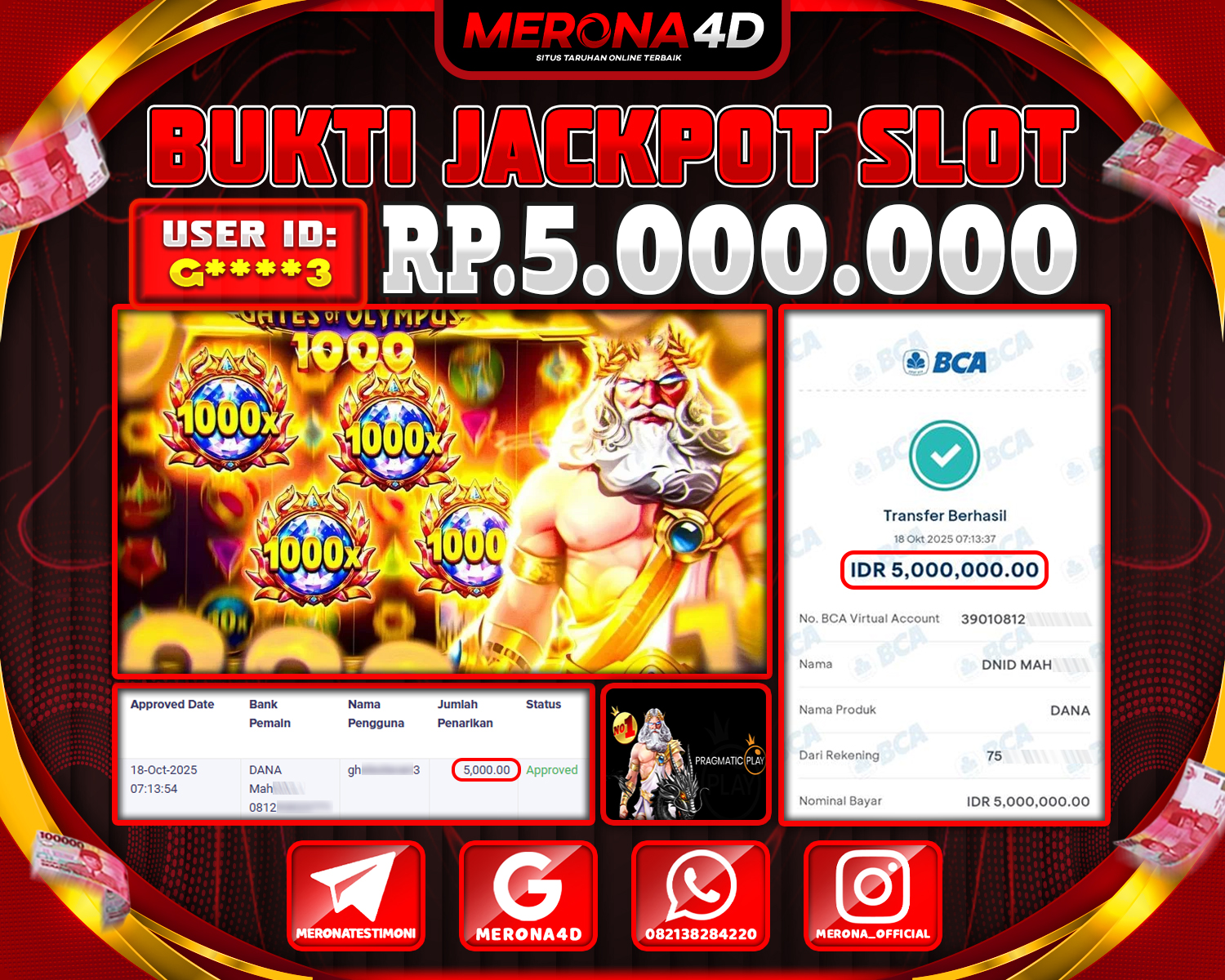 Selamat Kepada Member MERONA4D Gβ­‘οΏ½***οΏ½β­‘3 Telah Jackpot Di GATES OF OLYMPUS 1000