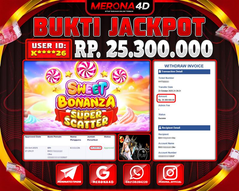 Selamat Kepada Member MERONA4D K*****26 Telah Jackpot Di SWEET BONANZA SUPER SCATTER