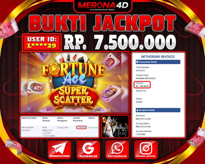 Selamat Kepada Member MERONA4D L*****29 Telah Jackpot Di FORTUNE ACE SUPER SCATTER