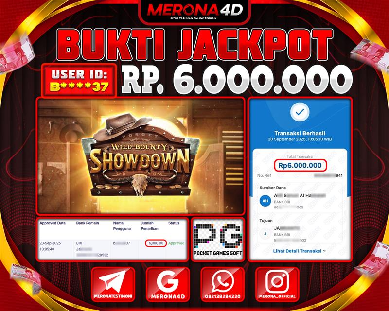 Selamat Kepada Member MERONA4D B*****7 Telah Jackpot Di WILD BOUNTY SHOWDOWN