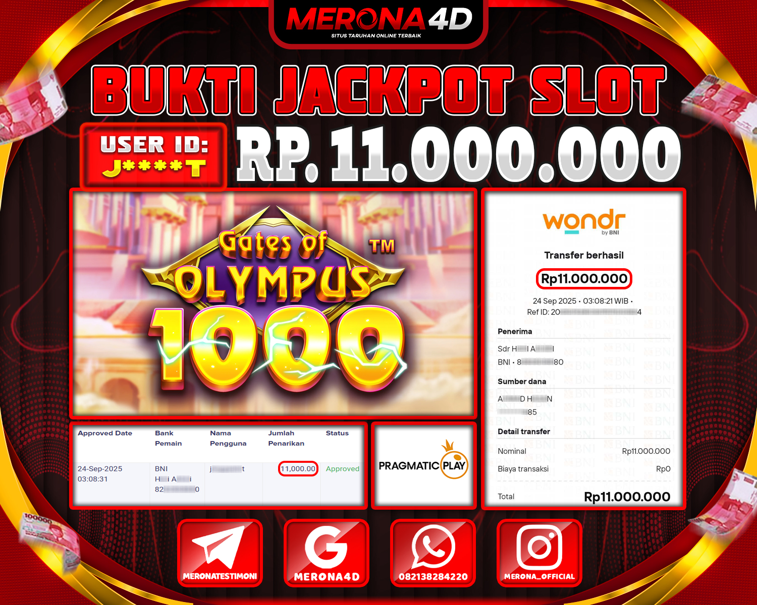 Selamat Kepada Member MERONA4D J****T Telah Jackpot Di GATES OF OLYMPUS 1000