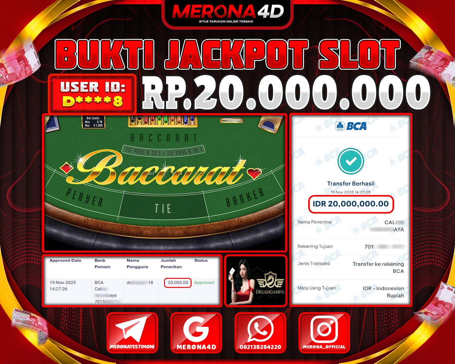 Selamat Kepada Member MERONA4D D****8 Telah Jackpot Di BACCARAT