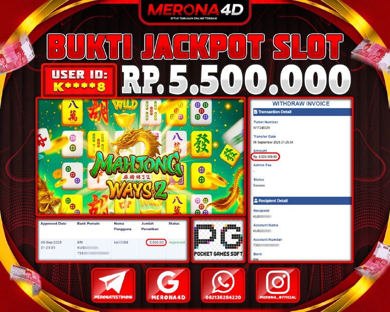 Selamat Kepada Member MERONA4D R****8 Telah Jackpot Di MAHJONG WAYS