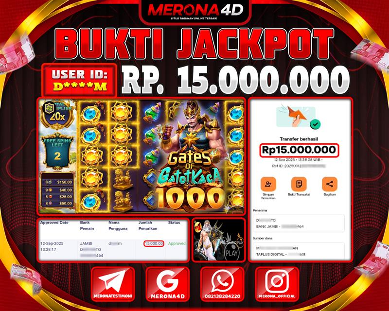 Selamat Kepada Member MERONA4D D****M Telah Jackpot Di GATES OF GATOT KACA 1000