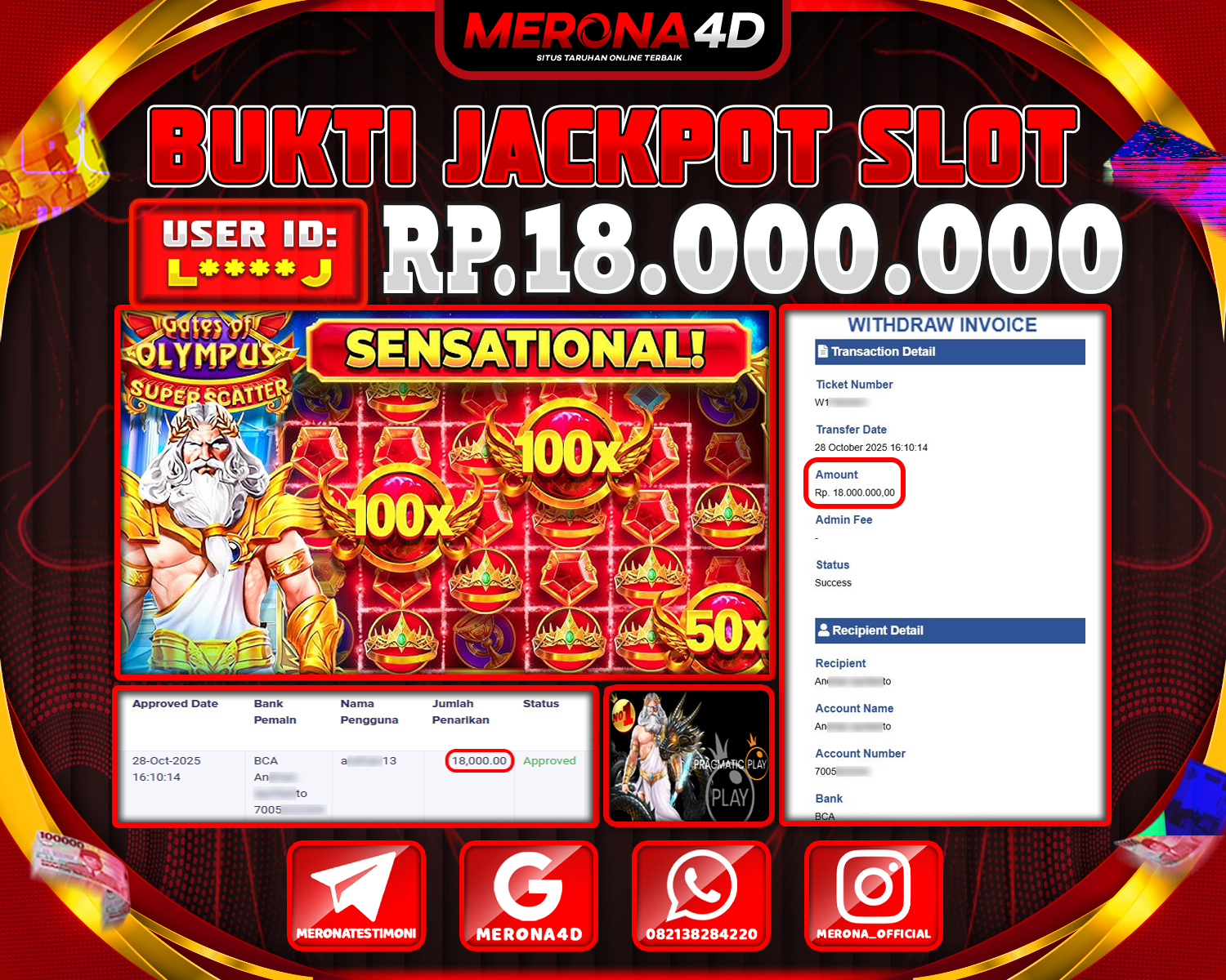Selamat Kepada Member MERONA4D Aβ­‘οΏ½***οΏ½β­‘3 Telah Jackpot Di GATES OF OLYMPUS SUPER SCATTER