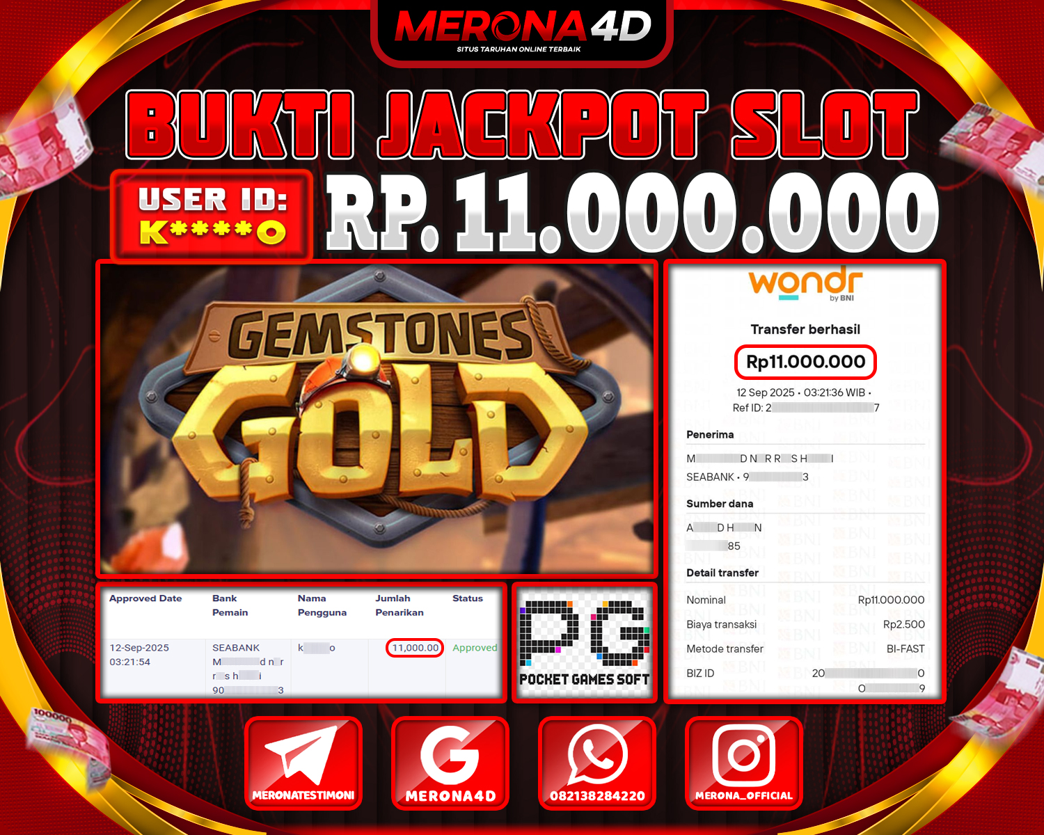Selamat Kepada Member MERONA4D K****0 Telah Jackpot Di GEMSTONES GOLD